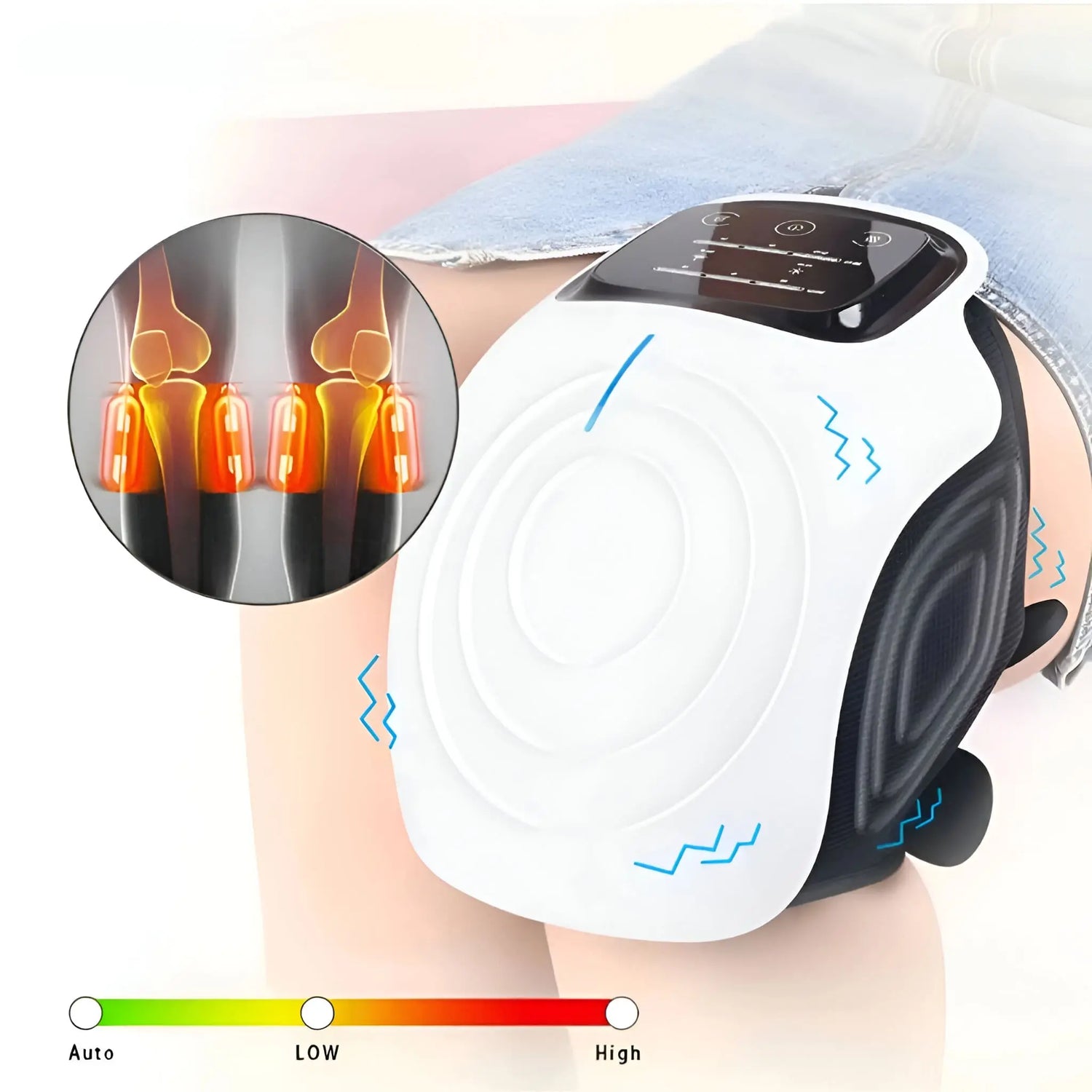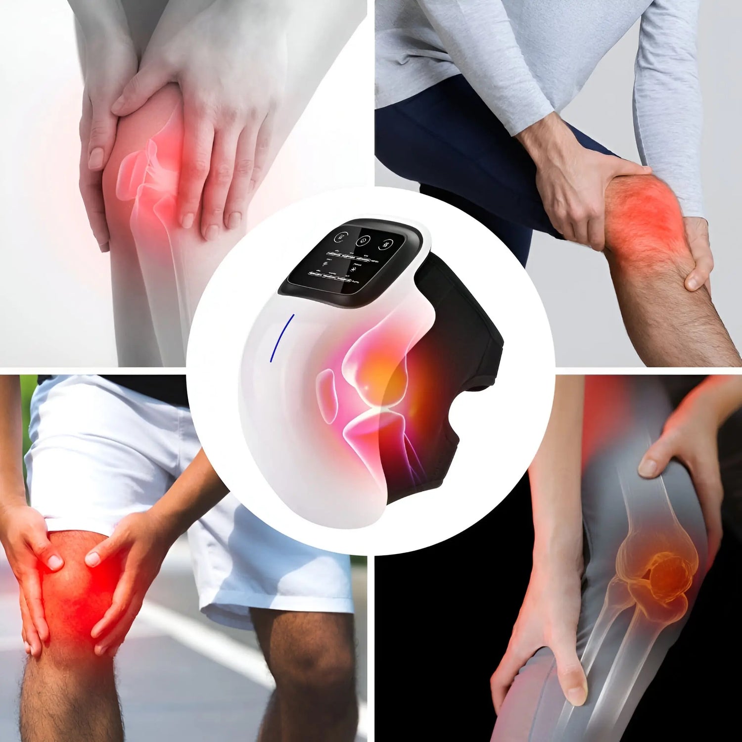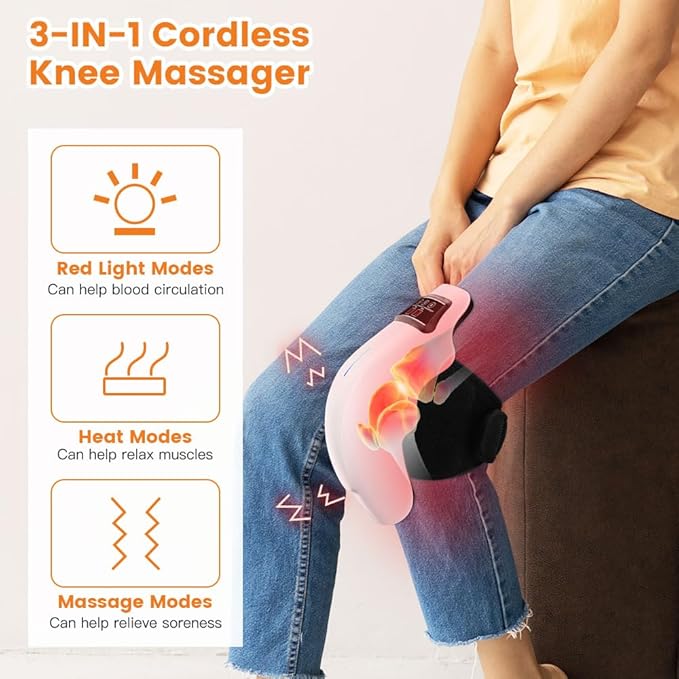 The massager combines vibration, heat, and red light therapy to promote blood circulation, relax muscles, and relieve knee or joint pain. You can adjust the intensity and temperature for your comfort.